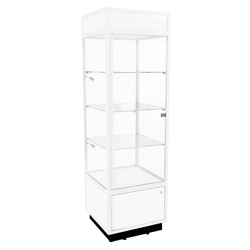 The TSF 600 Tower Display Cabinet, with its slimline lightbox, is an ideal free-standing display case for those who appreciate the aesthetic of a slimmer profile. Whether it's for displaying delicate teacups or timeless antiques, this cabinet creates a striking impression. It comes equipped with lockable doors and a secure storage base to keep your collection secure. With 360-degree visibility, our tower display cabinets are ideal for your intricate collectables, valuable merchandise, or art pieces that demand attention from every perspective.